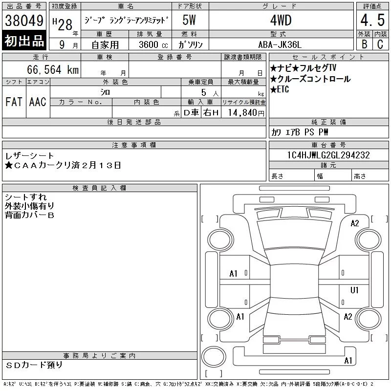 Chrysler JEEP WRANGLER с аукциона Японии CAA Chubu лот № 38049