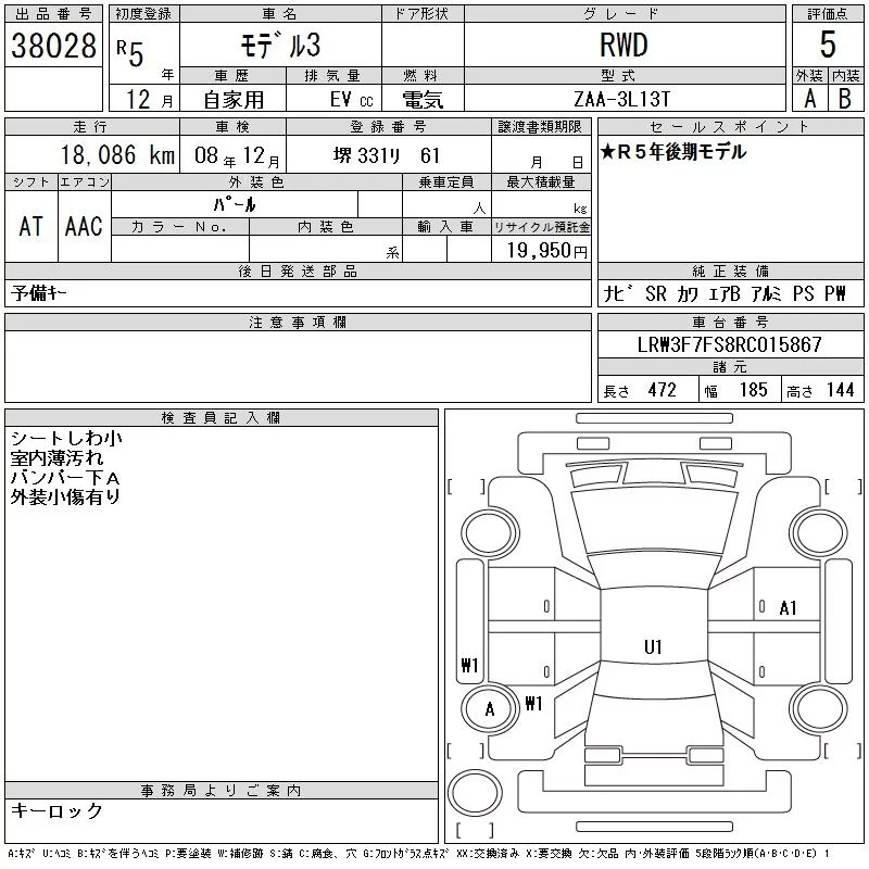 Tesla MODEL3 с аукциона Японии CAA Chubu лот № 38028