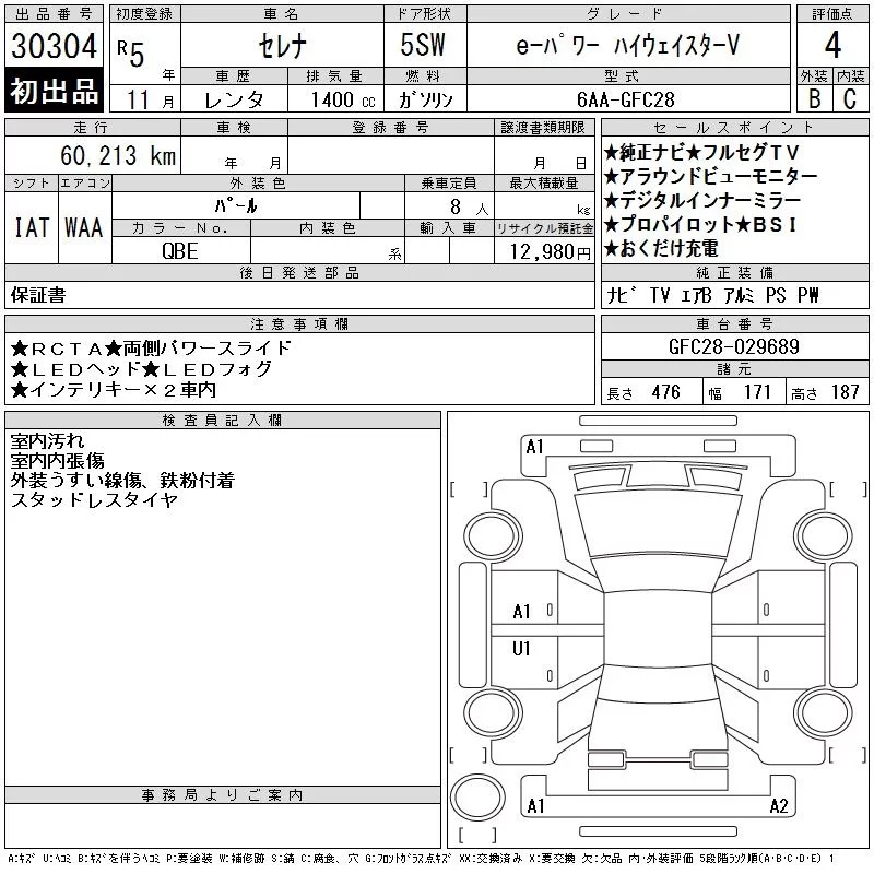 Nissan SERENA с аукциона Японии CAA Chubu лот № 30304