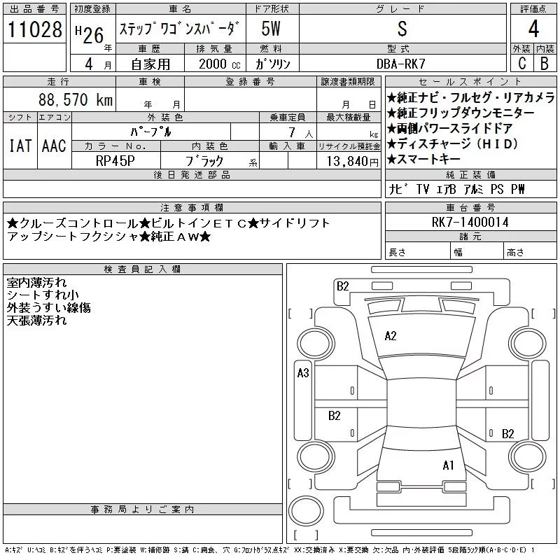 Honda STEP WAGON с аукциона Японии CAA Chubu лот № 11028