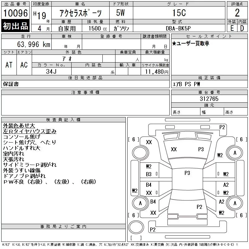 Mazda AXELA с аукциона Японии CAA Chubu лот № 10096