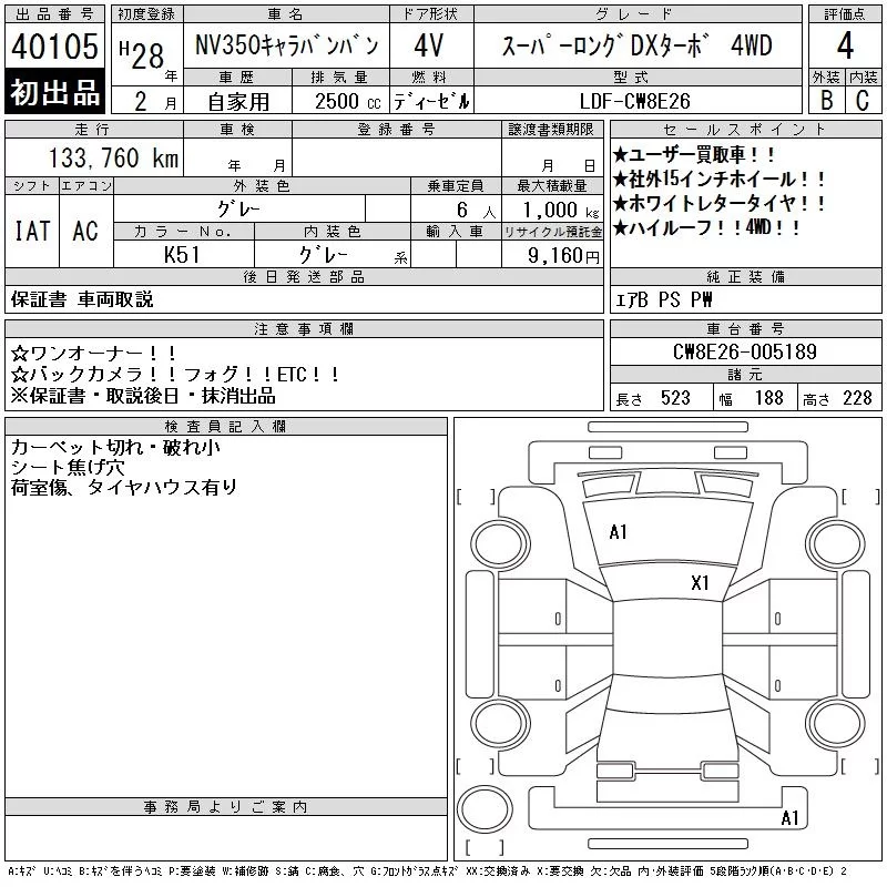 Nissan CARAVAN VAN с аукциона Японии CAA Chubu лот № 40105