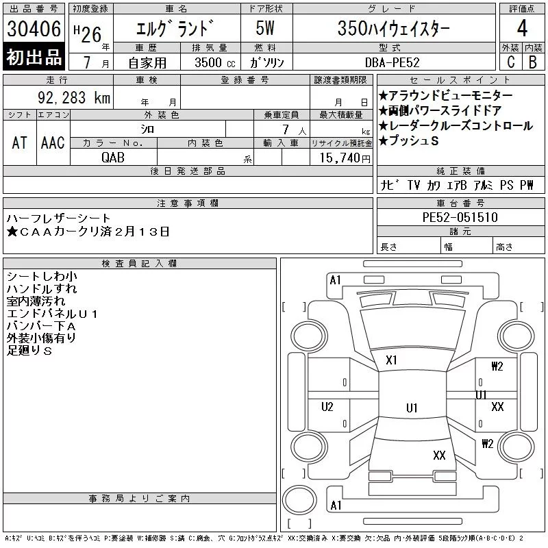 Nissan ELGRAND с аукциона Японии CAA Chubu лот № 30406