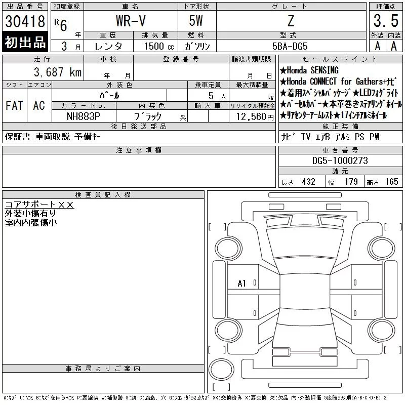 Honda WR-V с аукциона Японии CAA Chubu лот № 30418