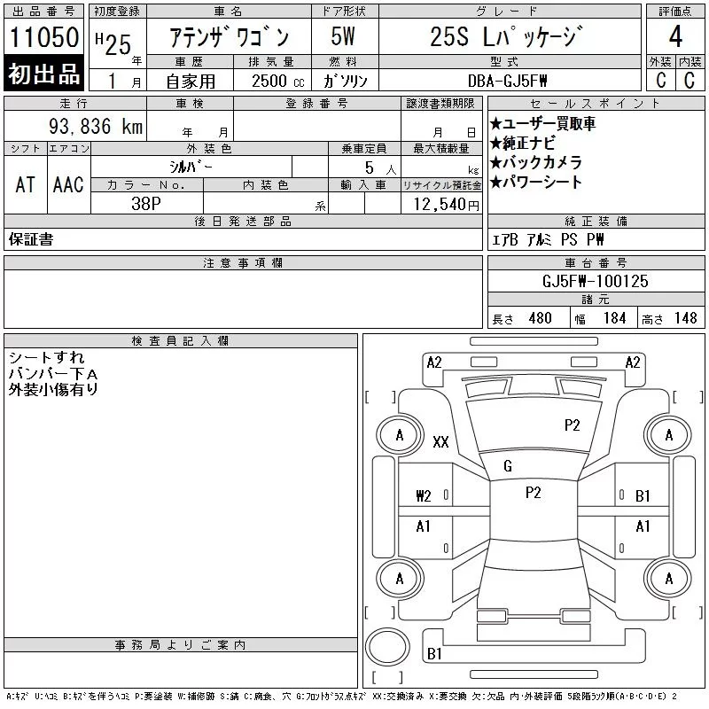 Mazda ATENZA WAGON с аукциона Японии CAA Chubu лот № 11050