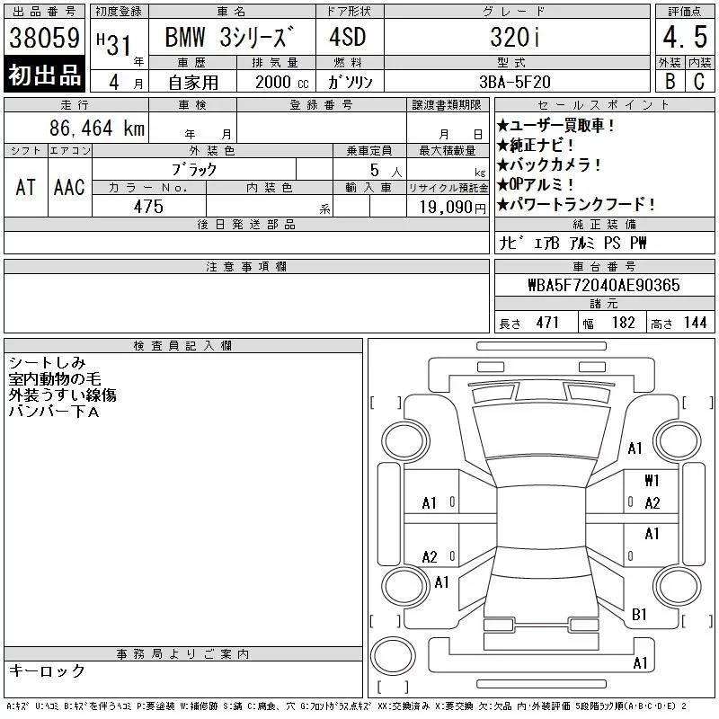 BMW 3-Series с аукциона Японии CAA Chubu лот № 38059