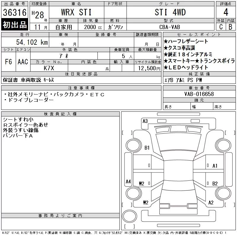 Subaru WRX с аукциона Японии CAA Chubu лот № 36316