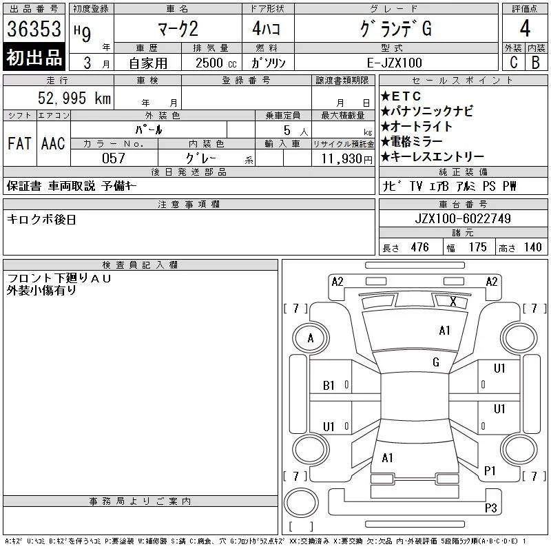 Toyota MARK II с аукциона Японии CAA Chubu лот № 36353