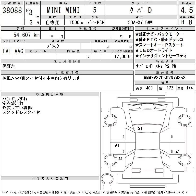 BMW MINI с аукциона Японии CAA Chubu лот № 38088