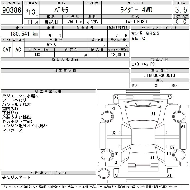 Nissan BASSARA с аукциона Японии CAA Chubu лот № 90386