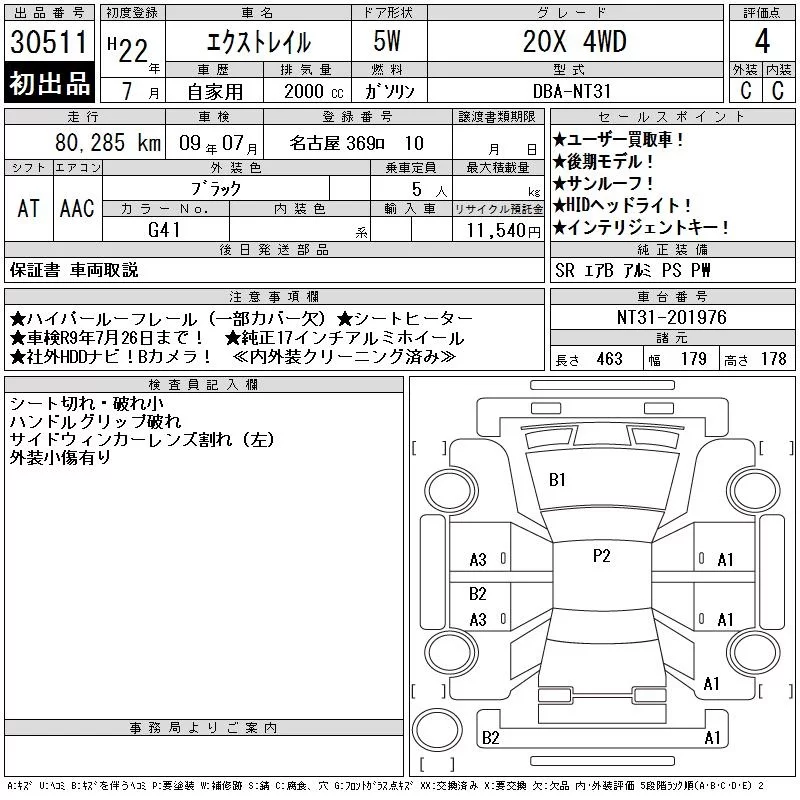 Nissan X-TRAIL с аукциона Японии CAA Chubu лот № 30511