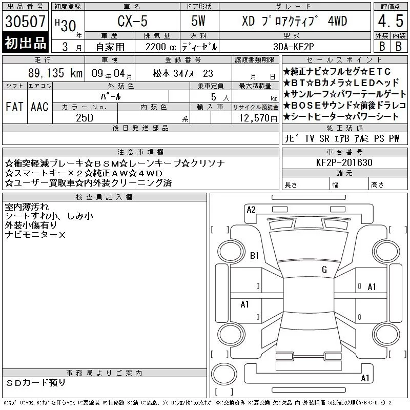 Mazda CX-5 с аукциона Японии CAA Chubu лот № 30507