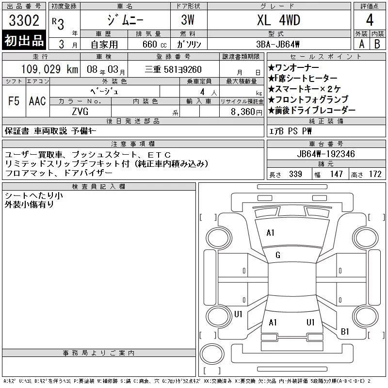Suzuki JIMNY с аукциона Японии CAA Chubu лот № 3302