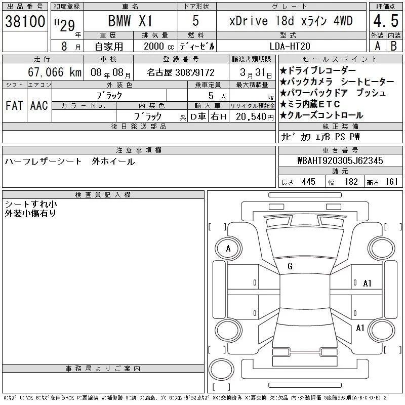 BMW X1 с аукциона Японии CAA Chubu лот № 38100