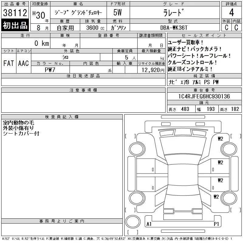 Chrysler JEEP GRAND CHEROKEE с аукциона Японии CAA Chubu лот № 38112