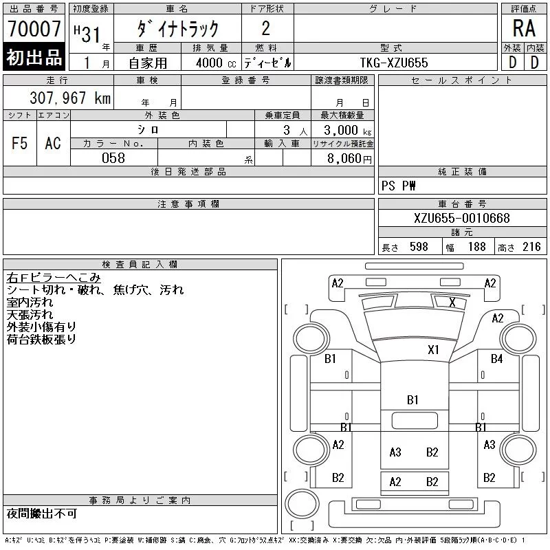 Toyota DYNA с аукциона Японии CAA Chubu лот № 70007