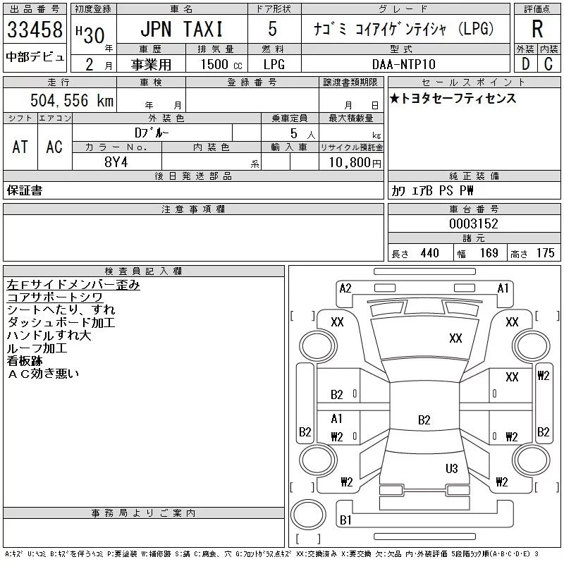Toyota JPN TAXI с аукциона Японии CAA Chubu лот № 33458