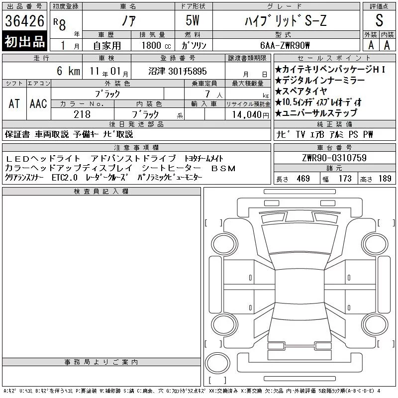 Toyota NOAH с аукциона Японии CAA Chubu лот № 36426