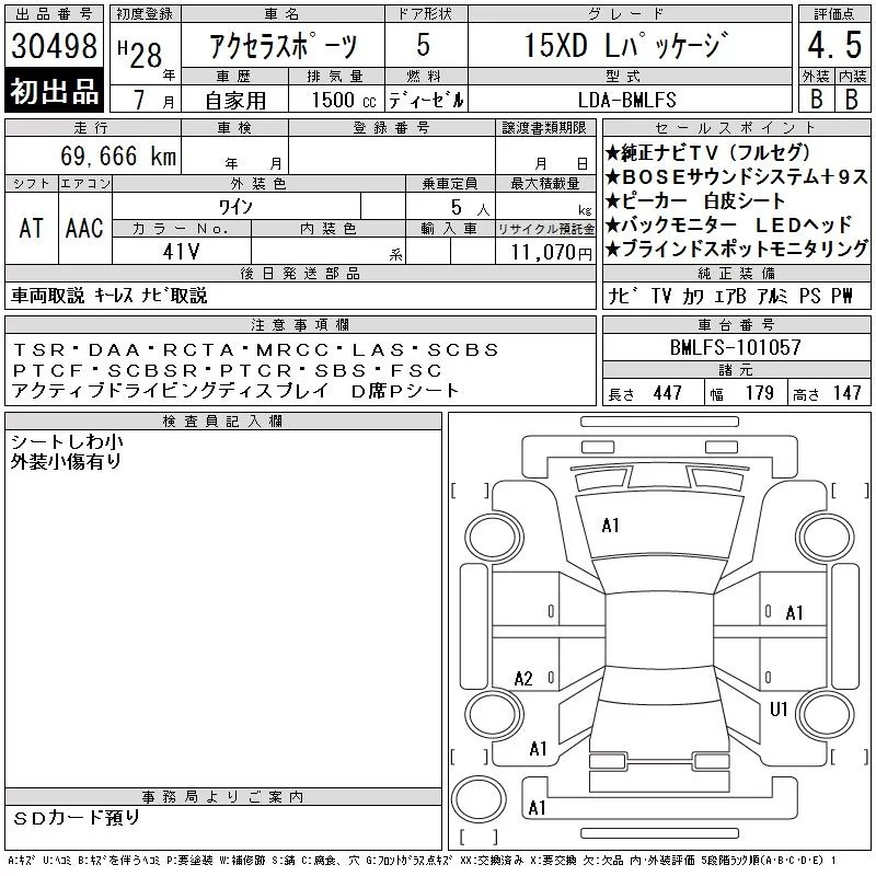 Mazda AXELA с аукциона Японии CAA Chubu лот № 30498