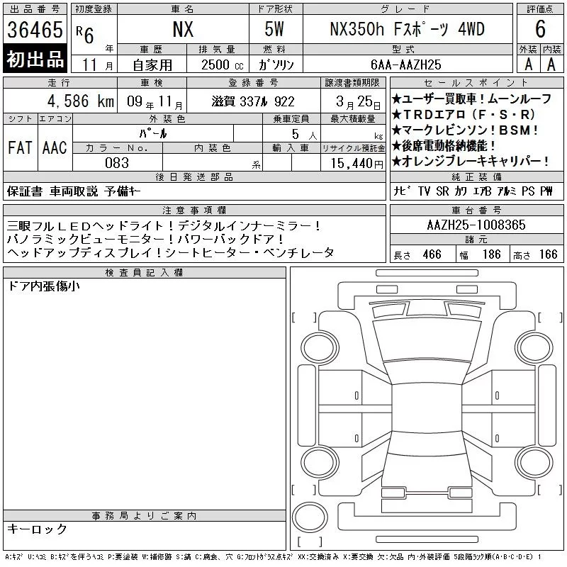 Lexus NX с аукциона Японии CAA Chubu лот № 36465