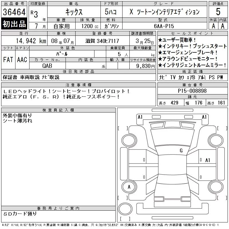 Nissan KICKS с аукциона Японии CAA Chubu лот № 36464