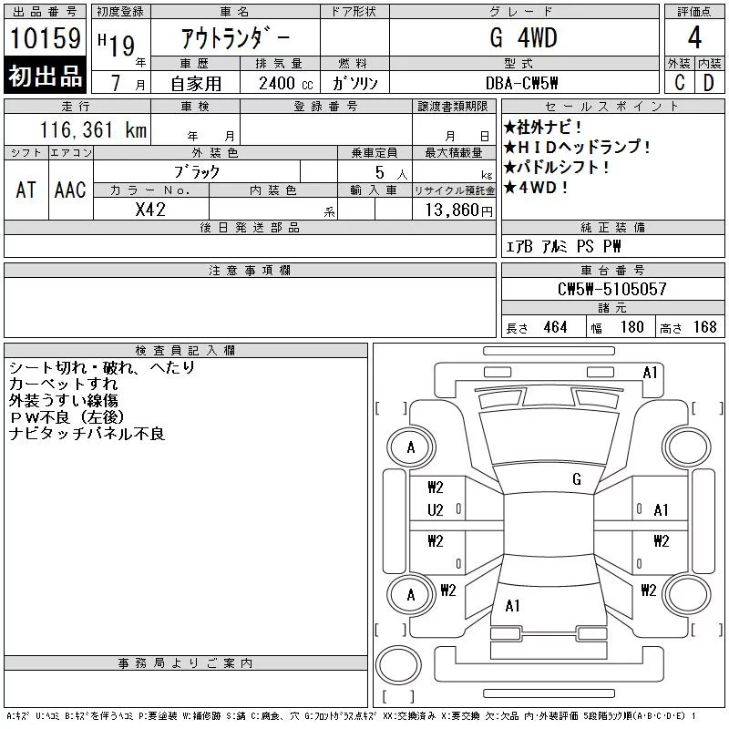 Mitsubishi OUTLANDER с аукциона Японии CAA Chubu лот № 10159