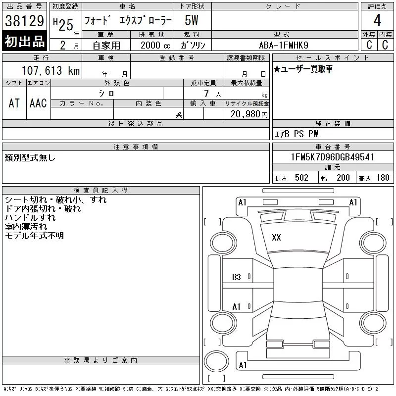 Ford EXPLORER с аукциона Японии CAA Chubu лот № 38129