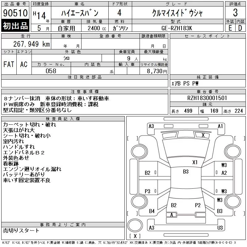 Toyota HIACE VAN с аукциона Японии CAA Chubu лот № 90510