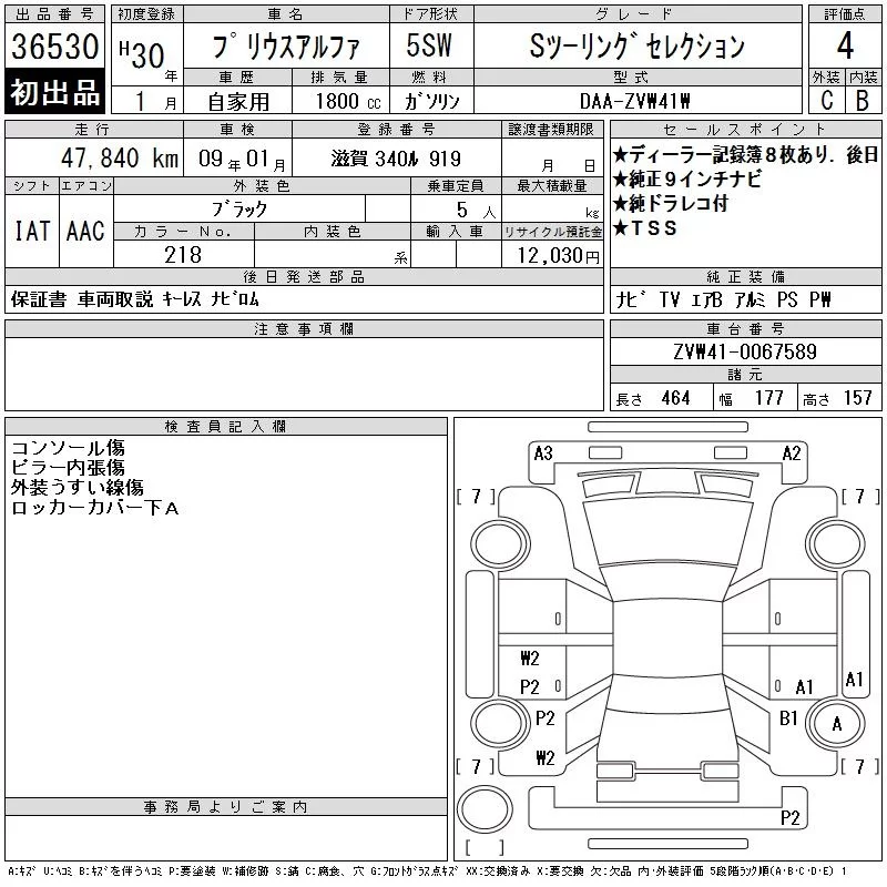 Toyota PRIUS ALPHA с аукциона Японии CAA Chubu лот № 36530
