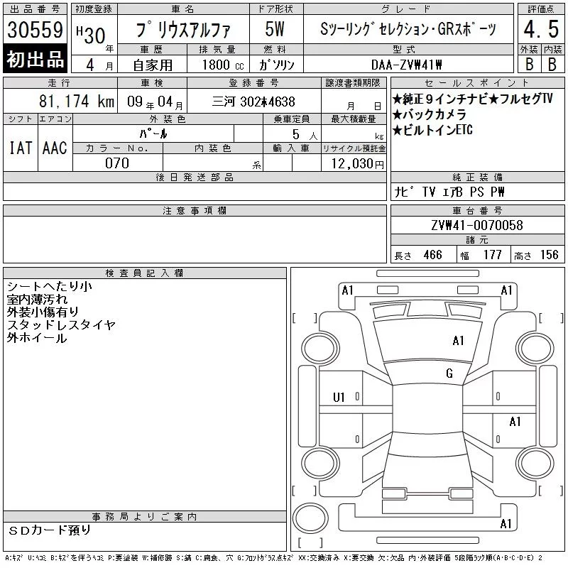 Toyota PRIUS ALPHA с аукциона Японии CAA Chubu лот № 30559