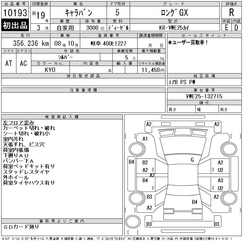 Nissan CARAVAN VAN с аукциона Японии CAA Chubu лот № 10193