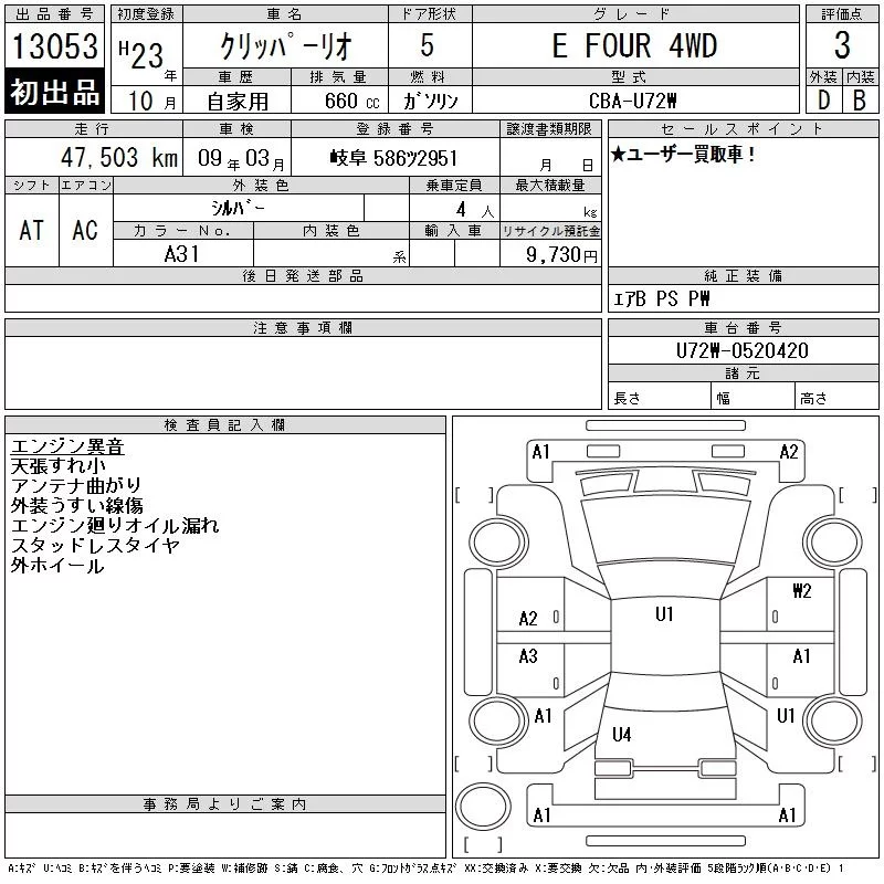 Nissan CLIPPER RIO с аукциона Японии CAA Chubu лот № 13053