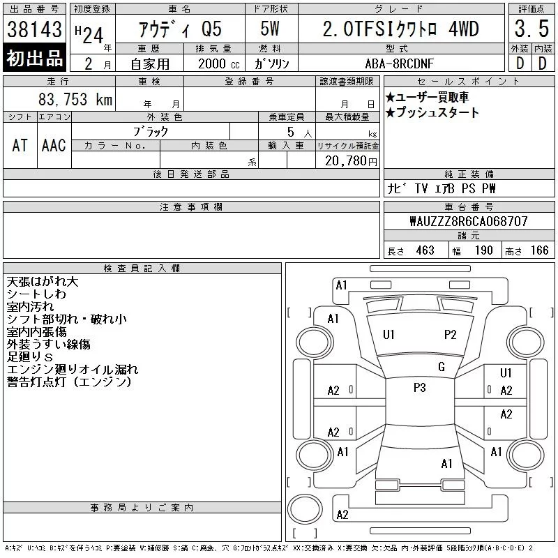 Audi Q5 с аукциона Японии CAA Chubu лот № 38143