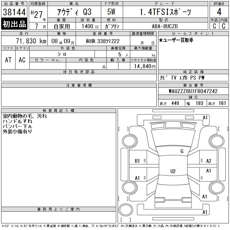 Audi Q3 с аукциона Японии CAA Chubu лот № 38144