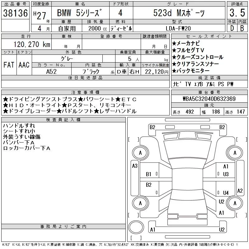 BMW 5-Series с аукциона Японии CAA Chubu лот № 38136