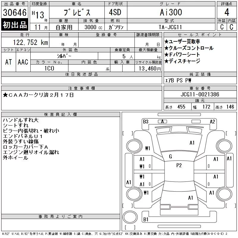 Toyota BREVIS с аукциона Японии CAA Chubu лот № 30646