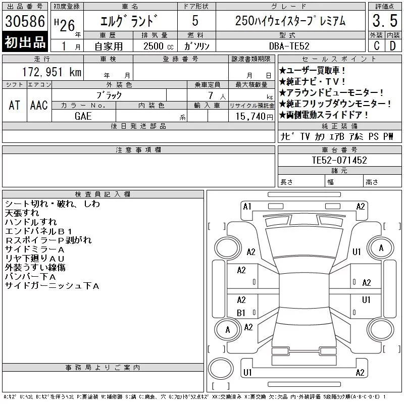 Nissan ELGRAND с аукциона Японии CAA Chubu лот № 30586