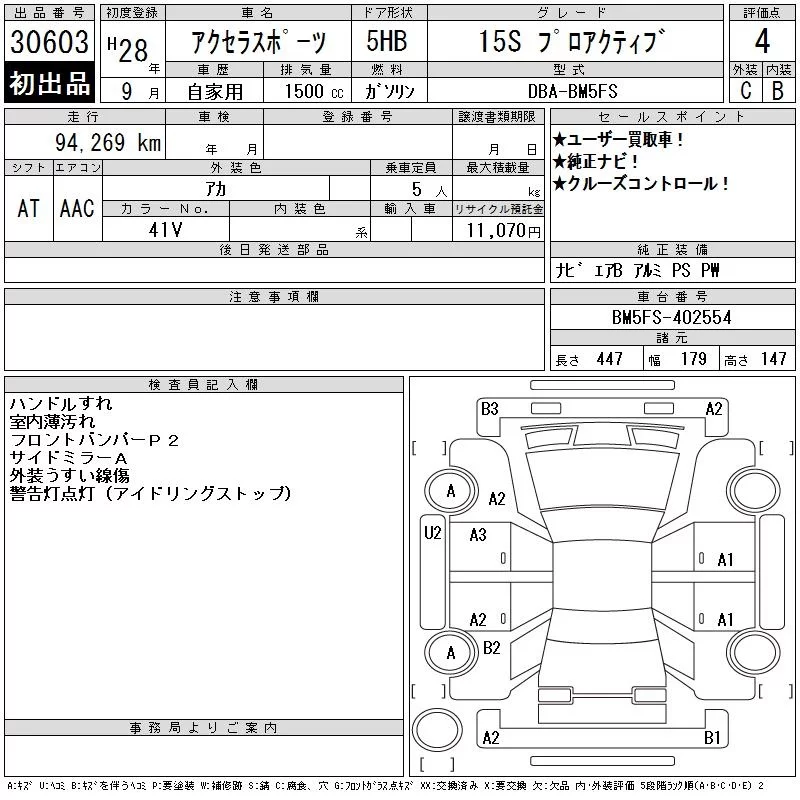 Mazda AXELA с аукциона Японии CAA Chubu лот № 30603