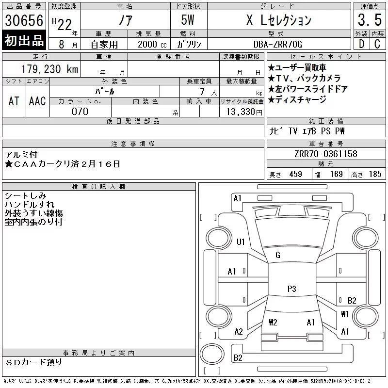 Toyota NOAH с аукциона Японии CAA Chubu лот № 30656