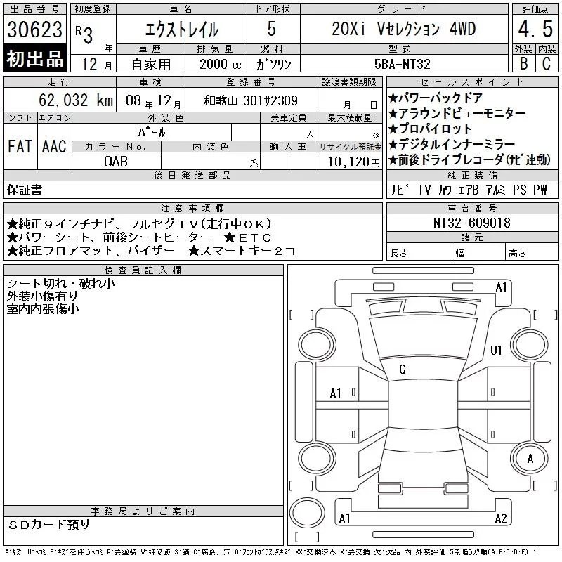 Nissan X-TRAIL с аукциона Японии CAA Chubu лот № 30623