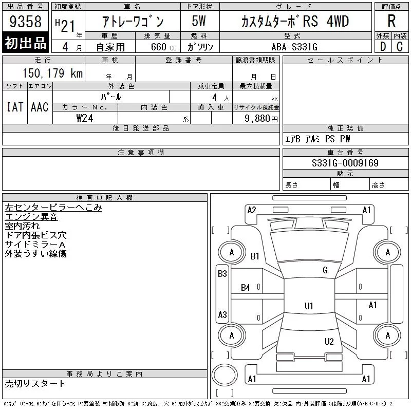 Daihatsu Atrai Wagon с аукциона Японии CAA Chubu лот № 9358