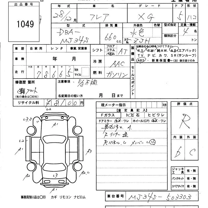 Mazda FLAIR с аукциона Японии KCAA Minami Kyushu лот № 1049