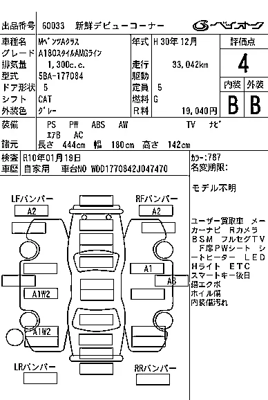 Mercedes-Benz A CLASS с аукциона Японии BAYAUC лот № 60033