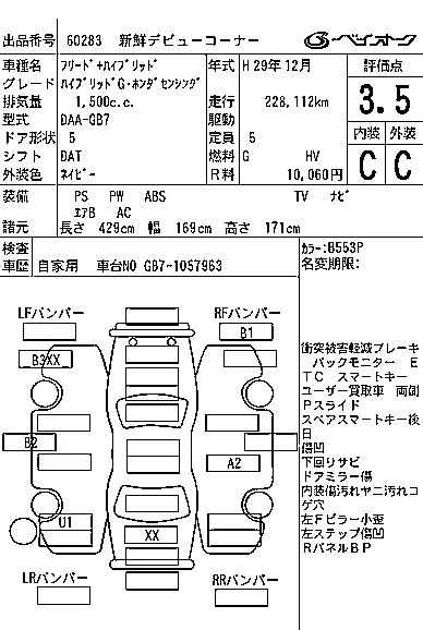 Honda FREED с аукциона Японии BAYAUC лот № 60283
