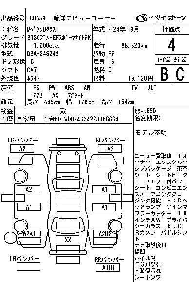 Mercedes-Benz B CLASS с аукциона Японии BAYAUC лот № 60559