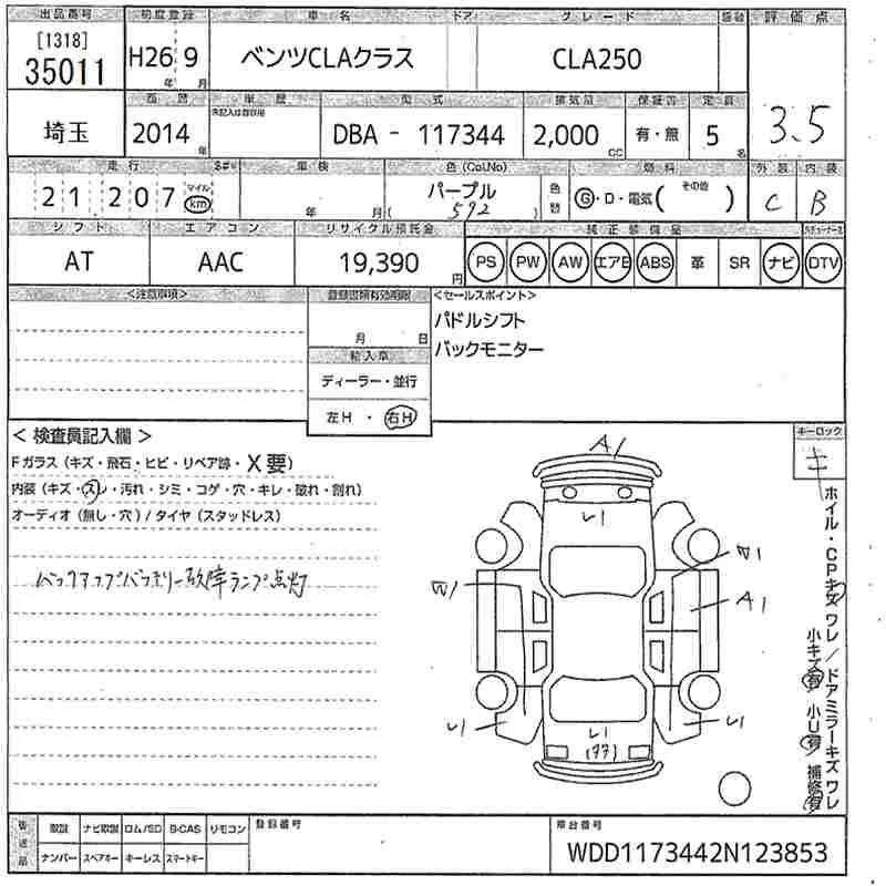 Mercedes-Benz CLA CLASS с аукциона Японии MIRIVE Saitama лот № 35011