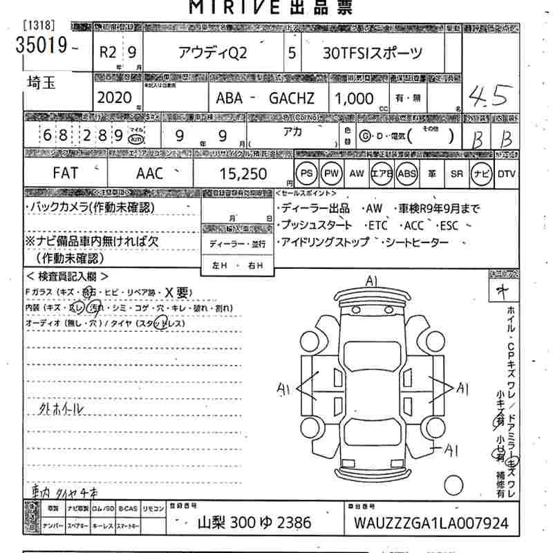 Audi Q2 с аукциона Японии MIRIVE Saitama лот № 35019
