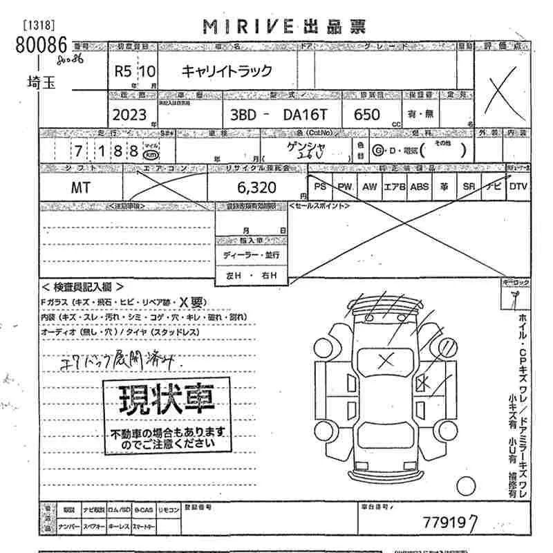 Suzuki CARRY TRUCK с аукциона Японии MIRIVE Saitama лот № 80086