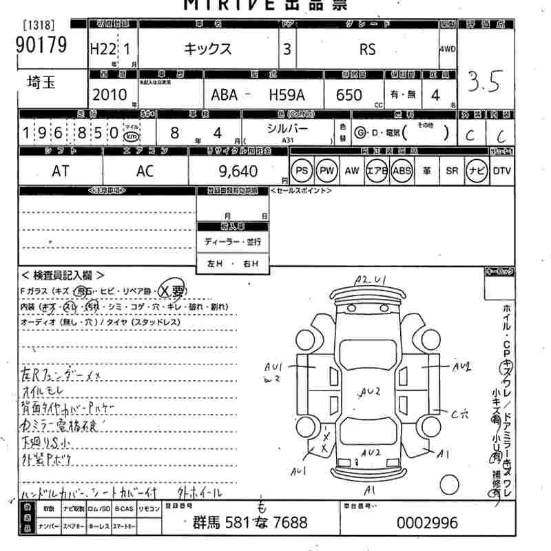 Nissan KIX с аукциона Японии MIRIVE Saitama лот № 90179