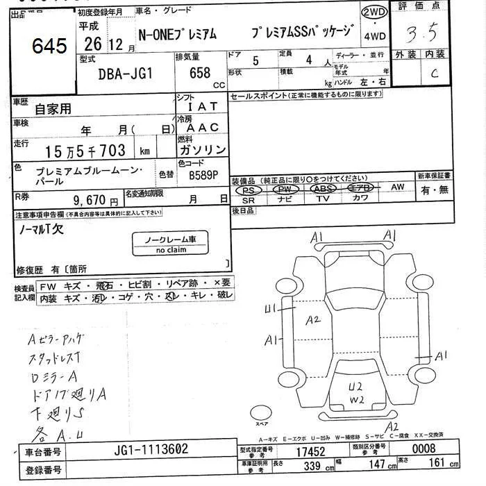 Honda N ONE с аукциона Японии JU Ishikawa лот № 645